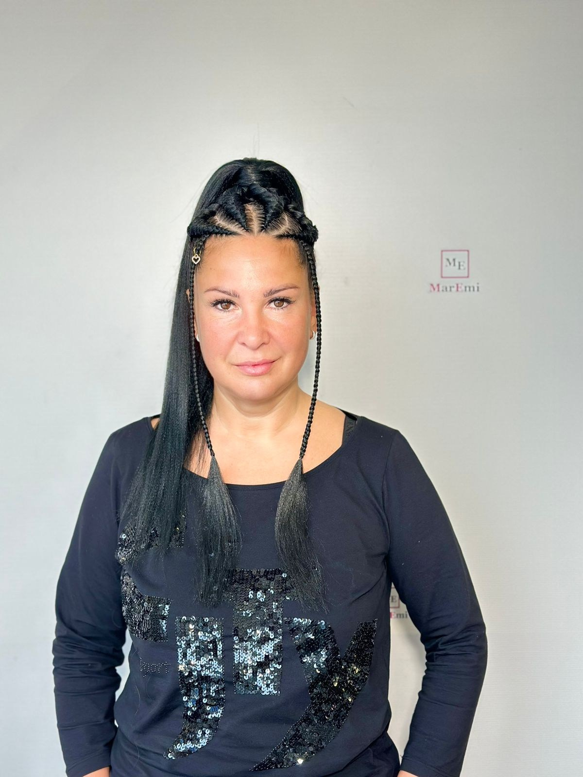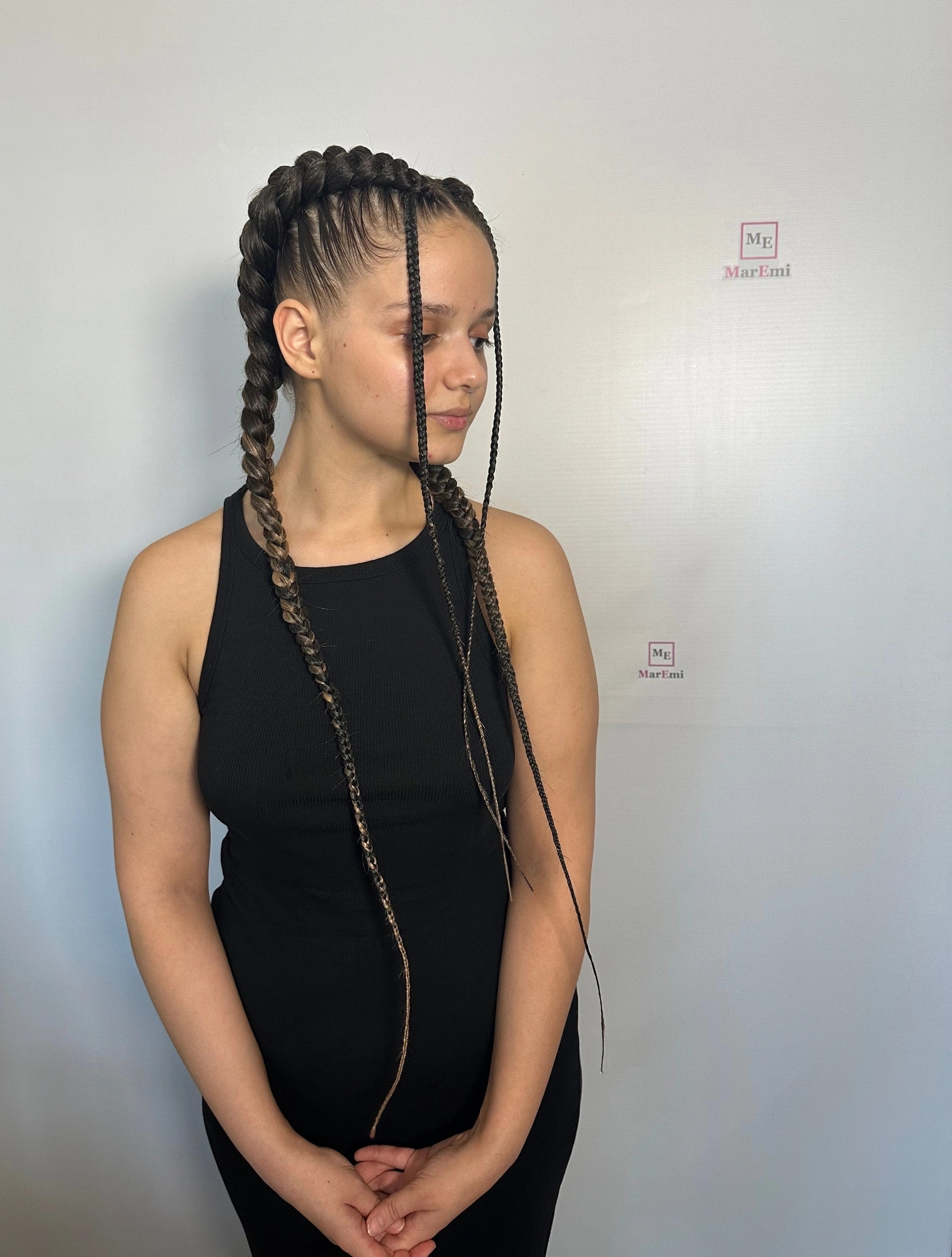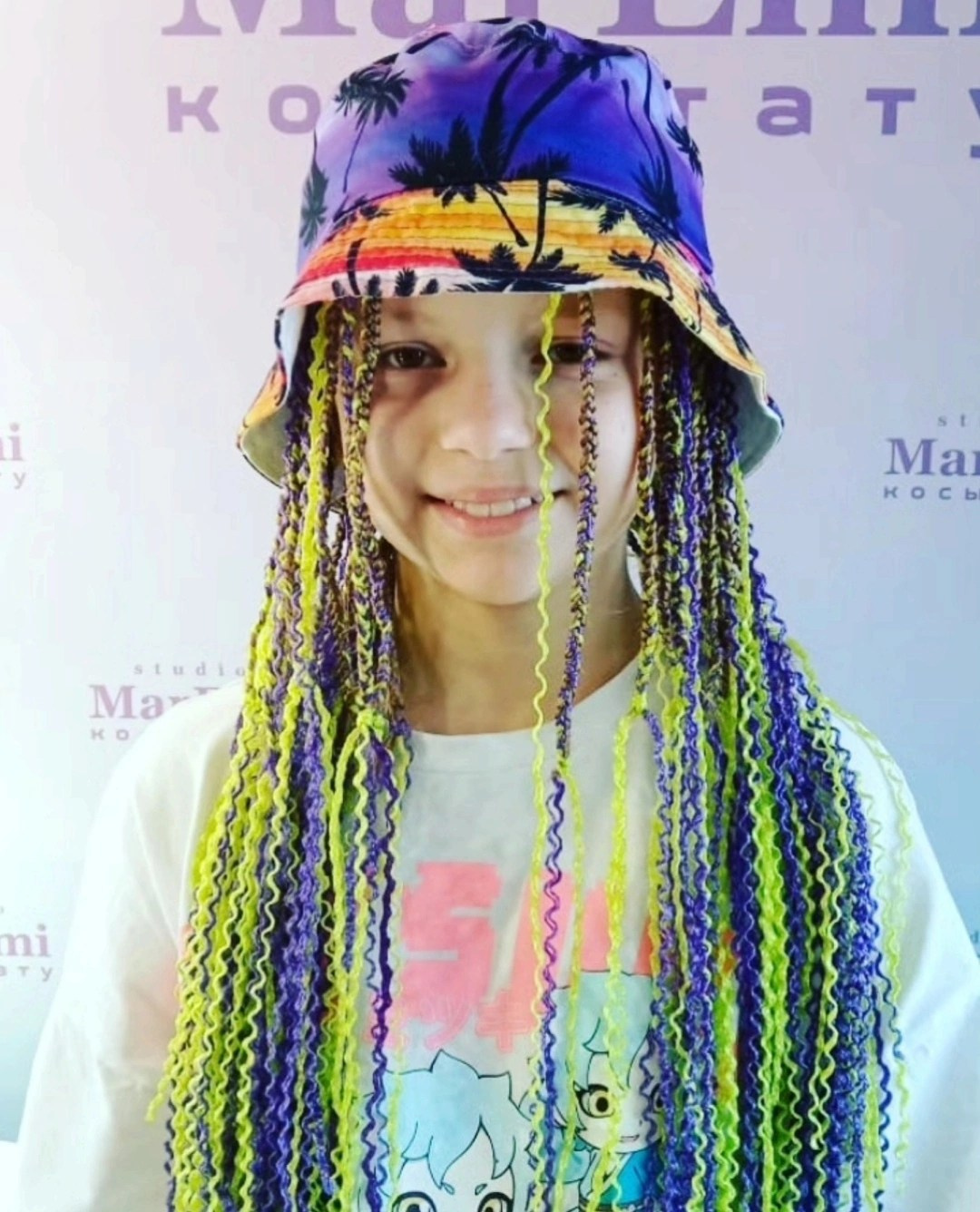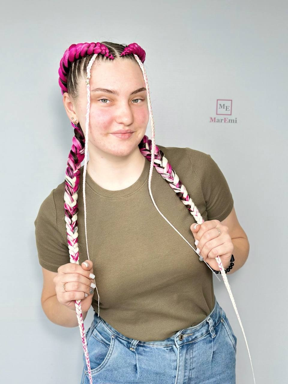 Брейды заканчиваются на макушке и фиксируются резинкой