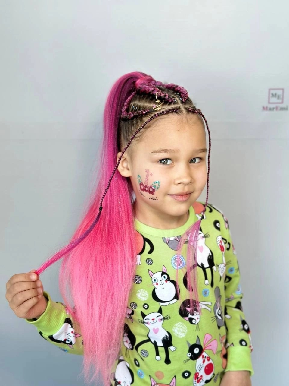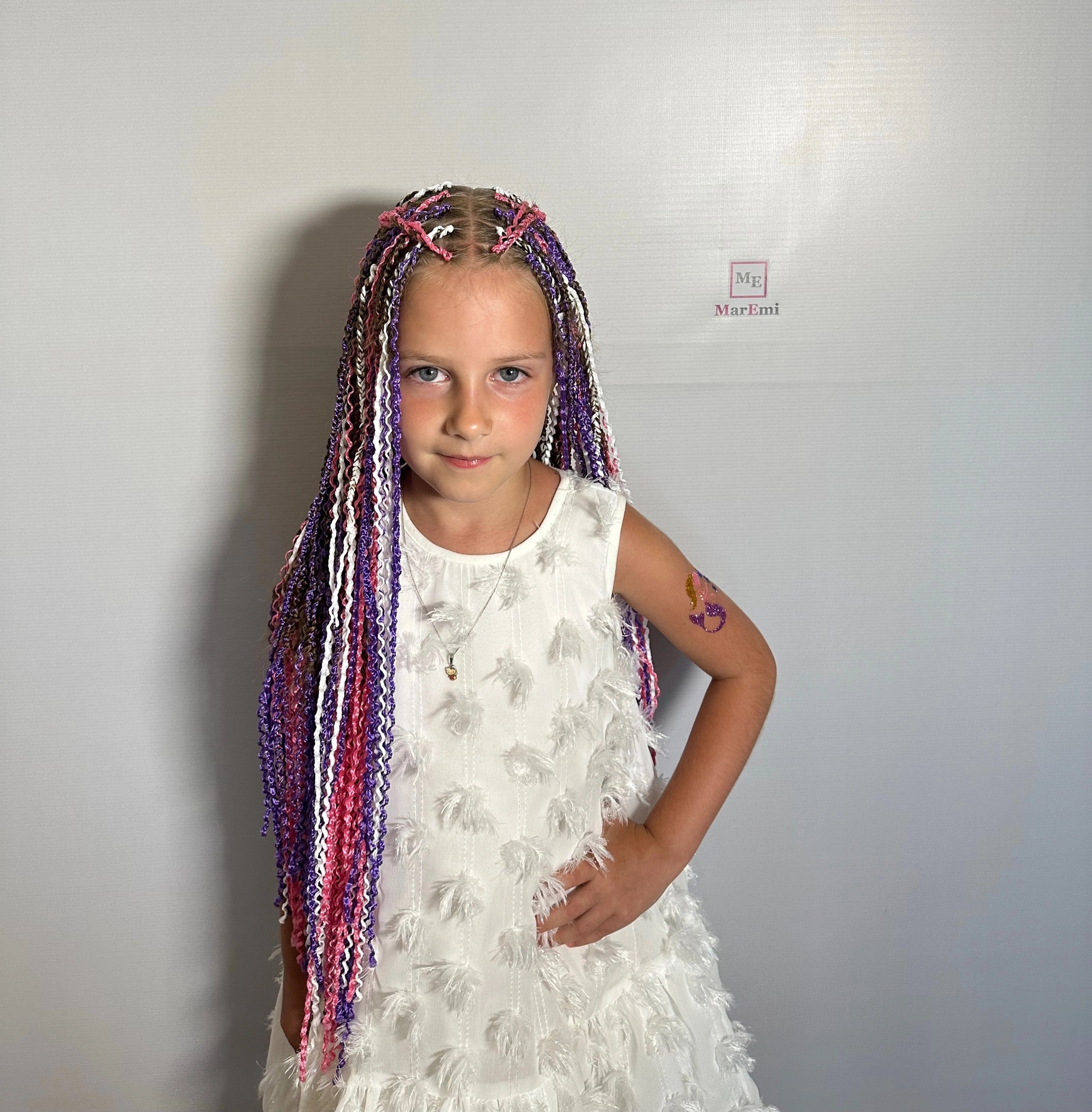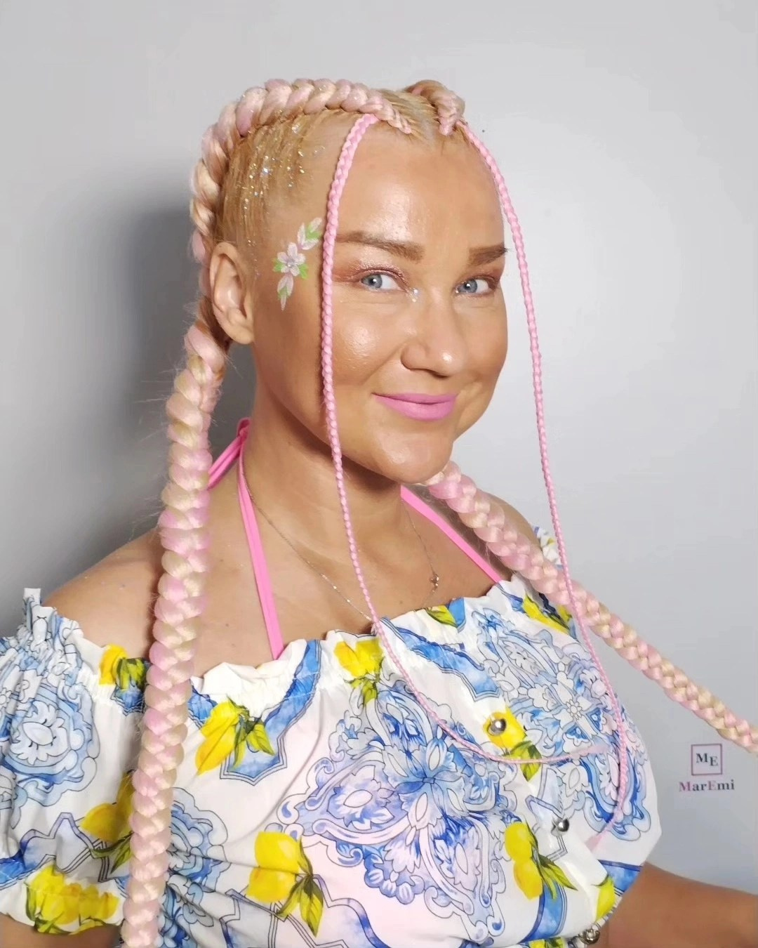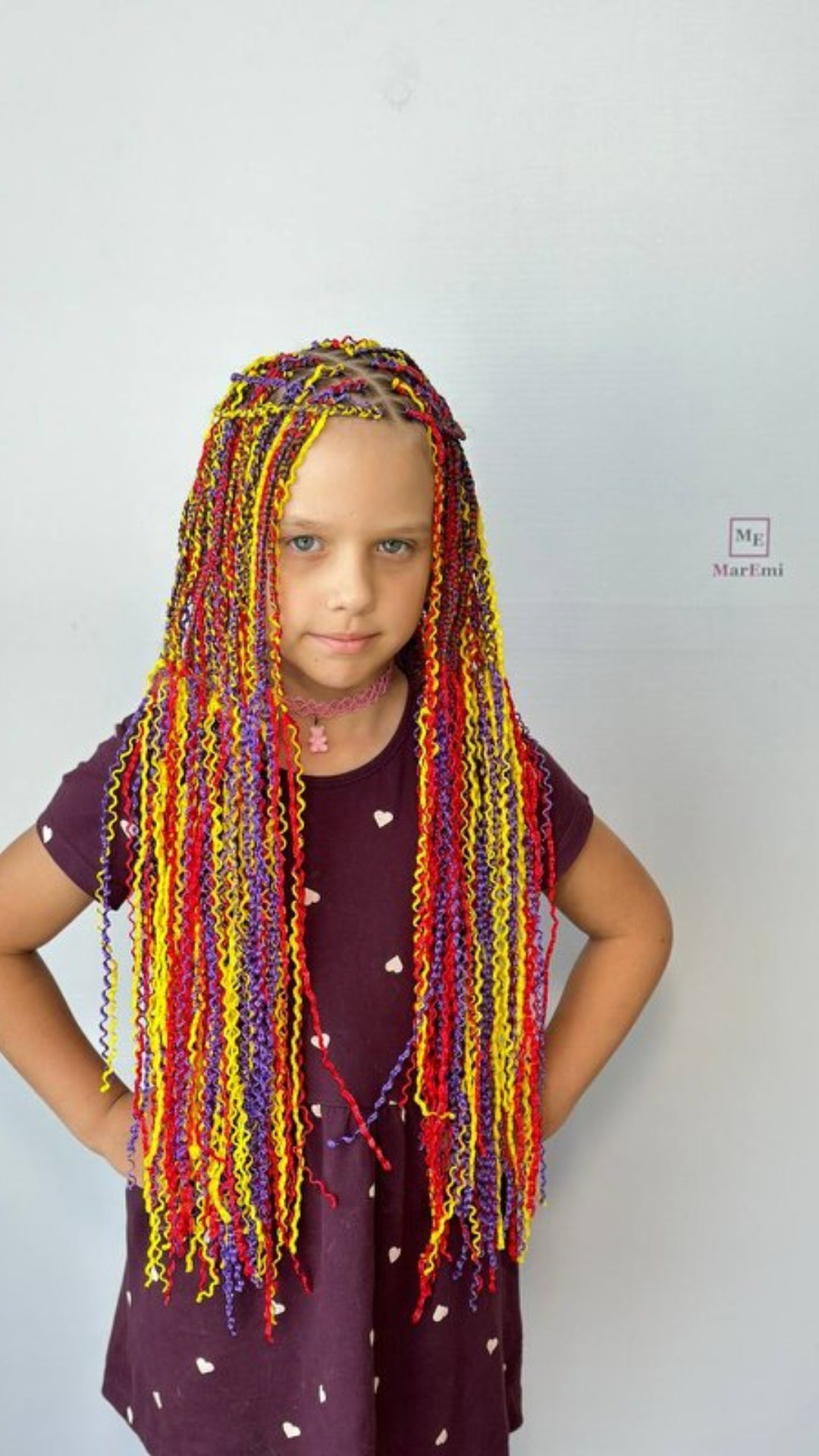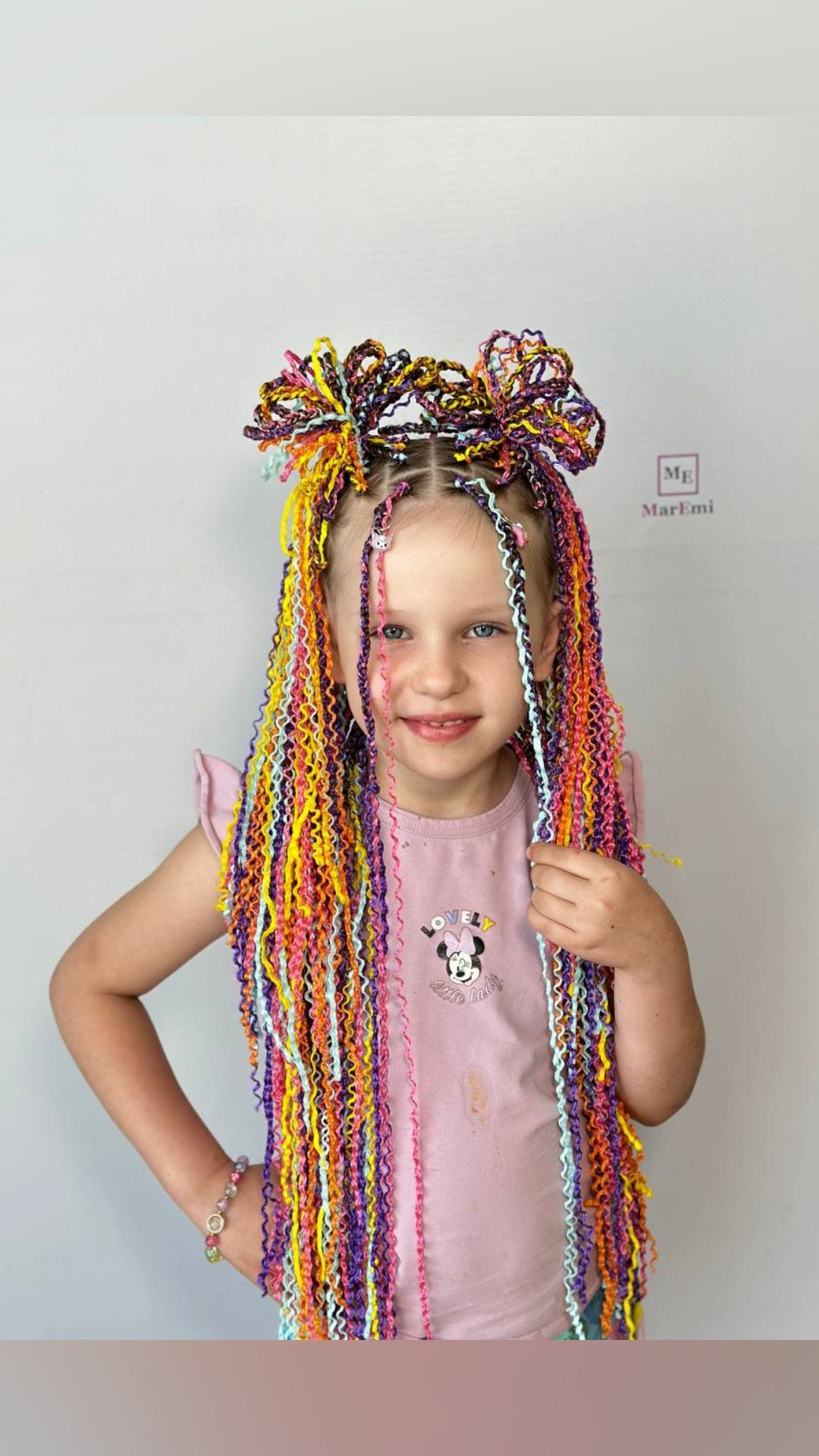 Брейды заканчиваются на макушке и фиксируются резинкой
