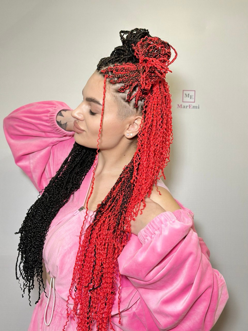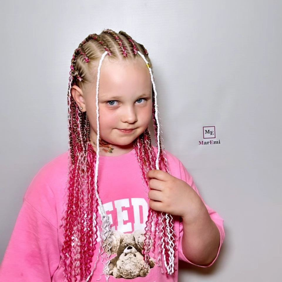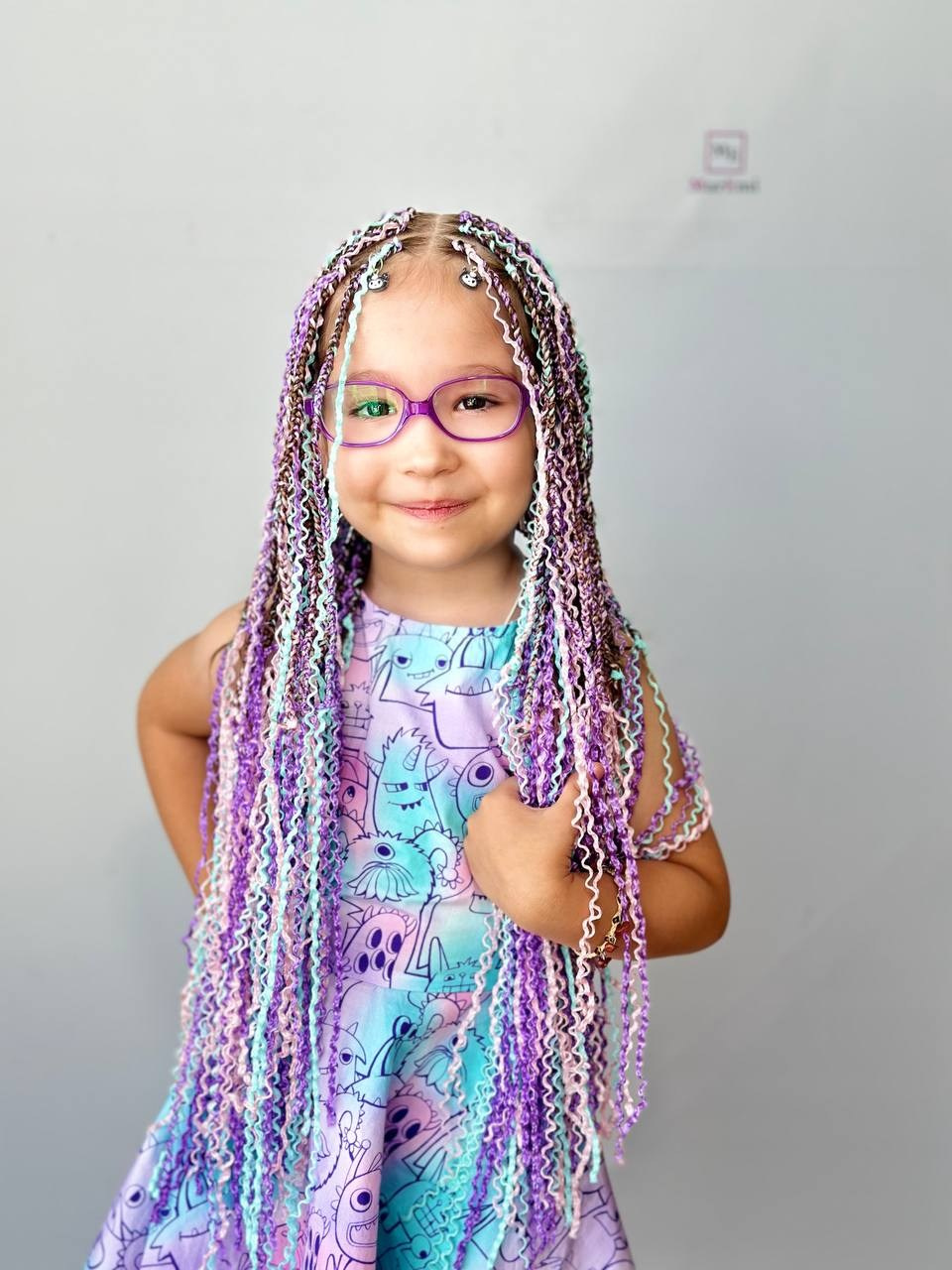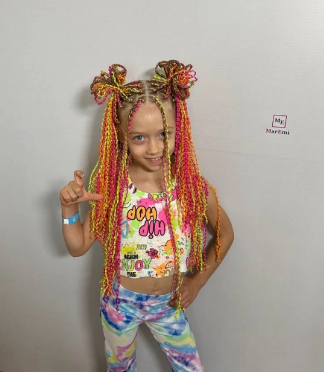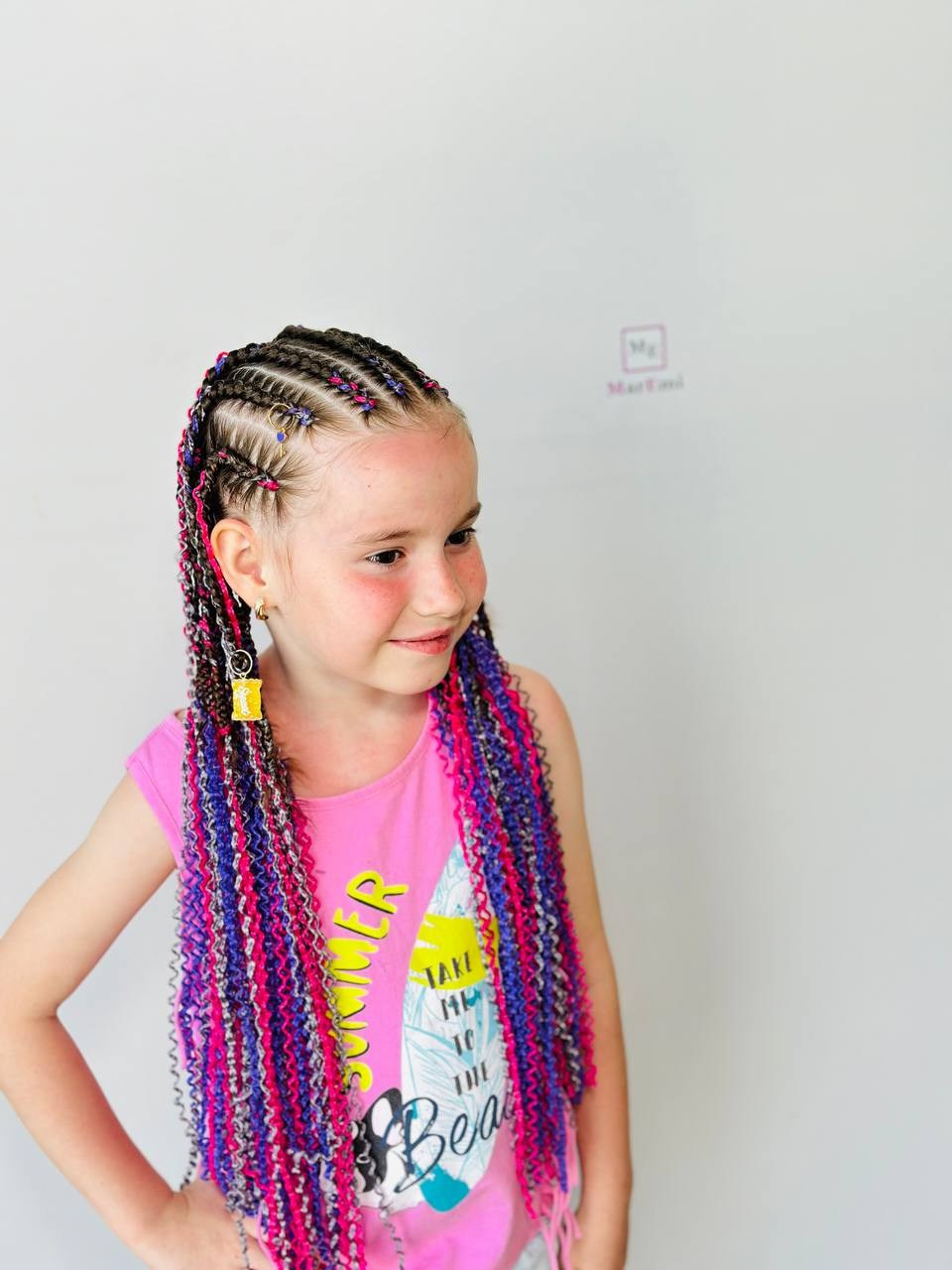 Брейды заканчиваются на макушке и фиксируются резинкой