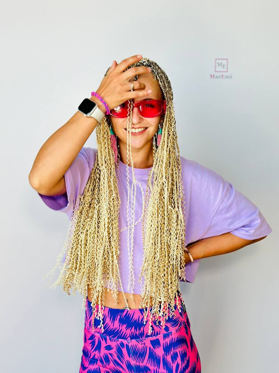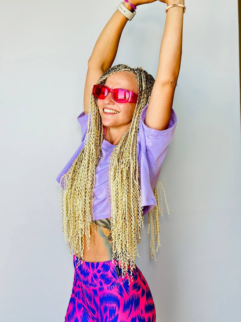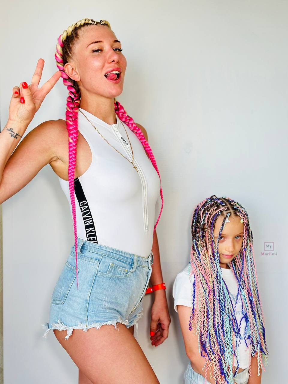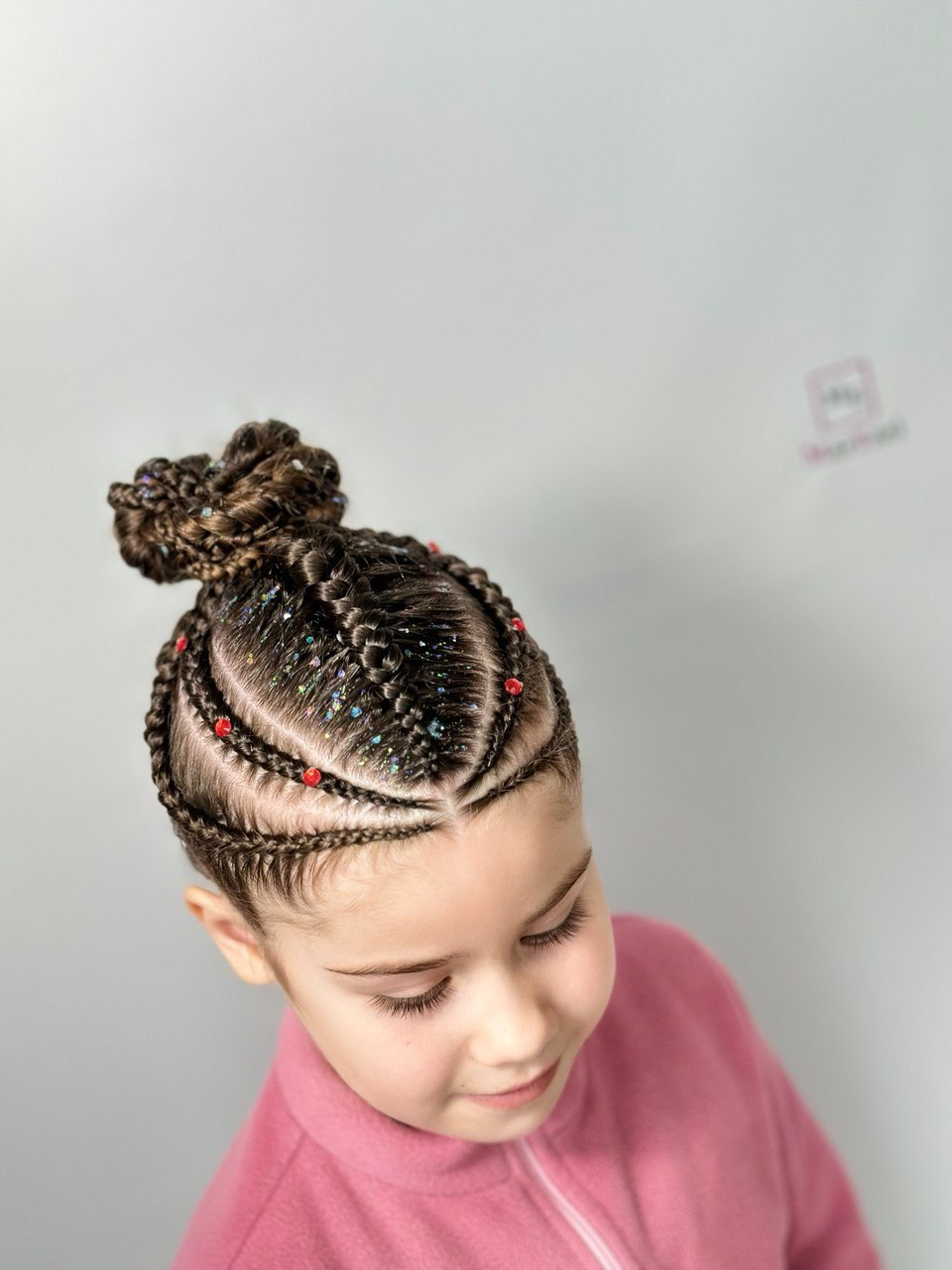 Брейды заканчиваются на макушке и фиксируются резинкой