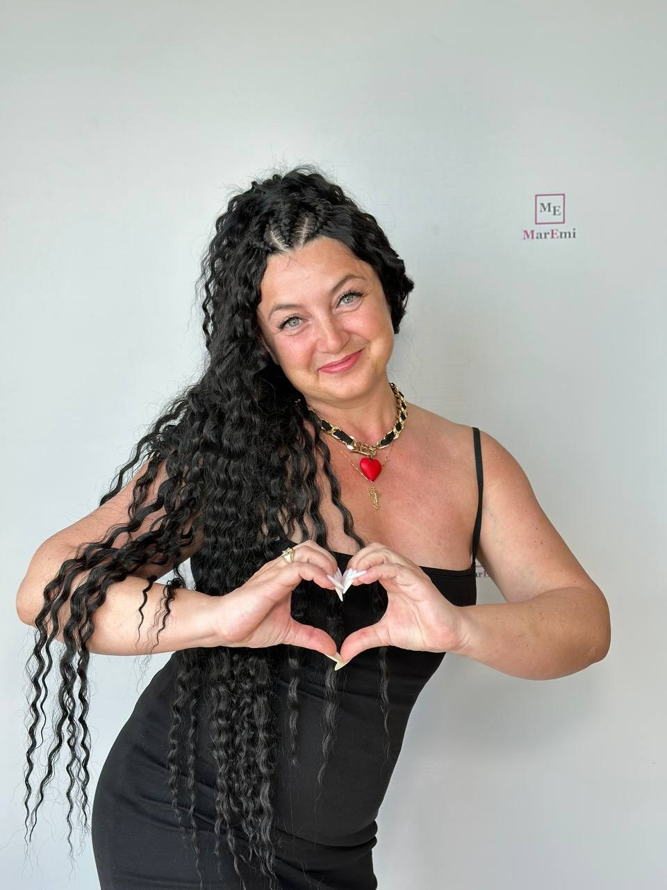 Пряди вплетаются через брейд, и каждая из них, словно капля, спускается вниз